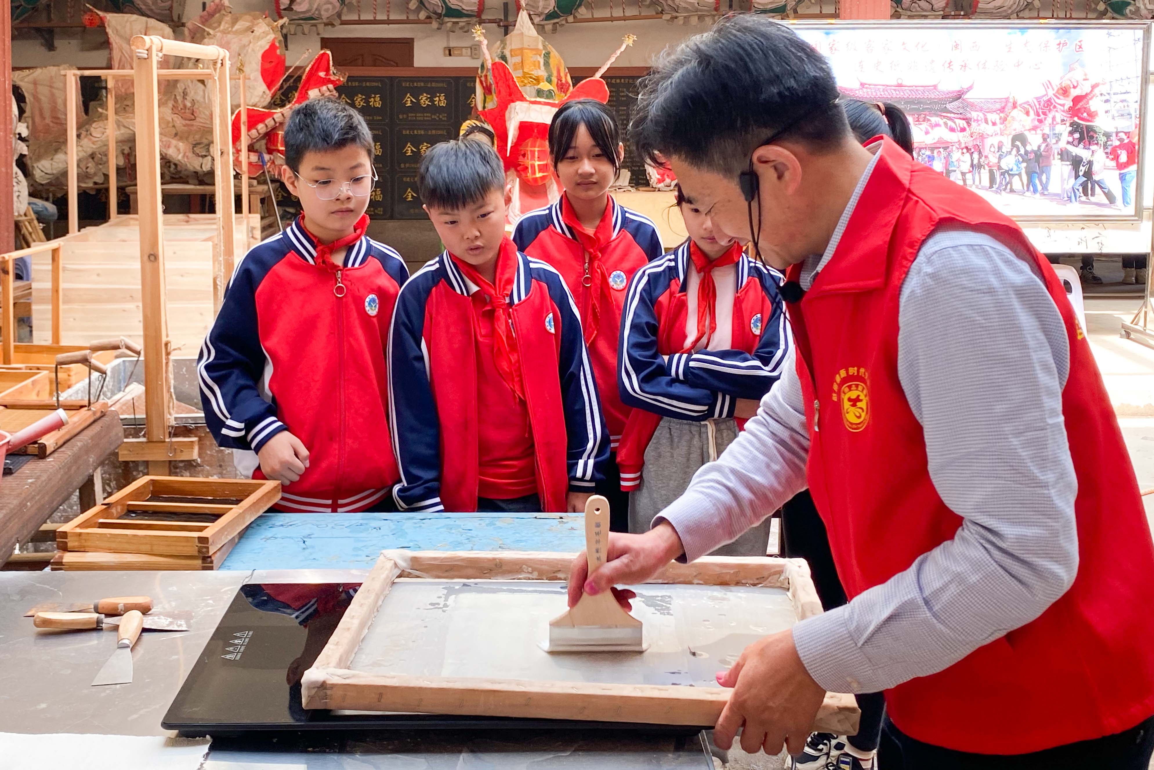 学生学习连史纸制作技艺